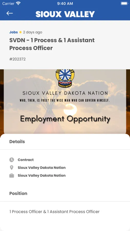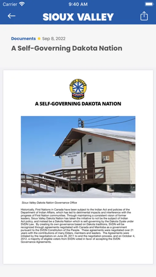 Welcome to the Official App of the Sioux Valley Dakota Nation! We have developed the Sioux Valley Dakota Nation app to be a communications platform for our community. Our app helps Sioux Valley Dakota Nation staff, community members, band members, and the general public to keep up with goings-on around the Nation.