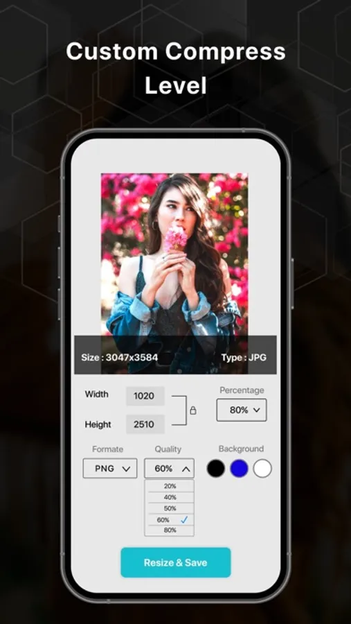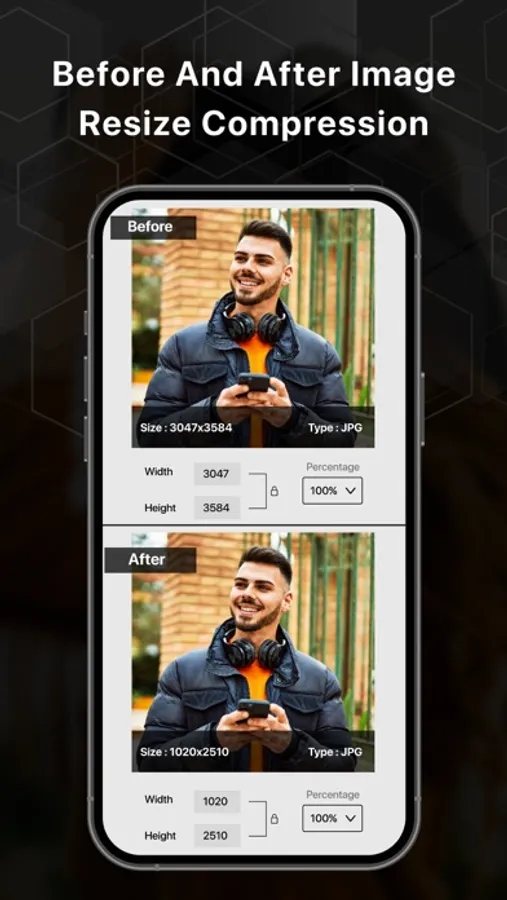 When the size of your photos matters, you often have to give up its quality. You can image resize - photo resize with exact pixel requirements keeping the best quality. In this image resizer free app there are already predefined sizes but even you can enter the width and height of your own choice and percentage. This photo compressor & resize image app which have the options to save the images in PNG or JPG Format.
