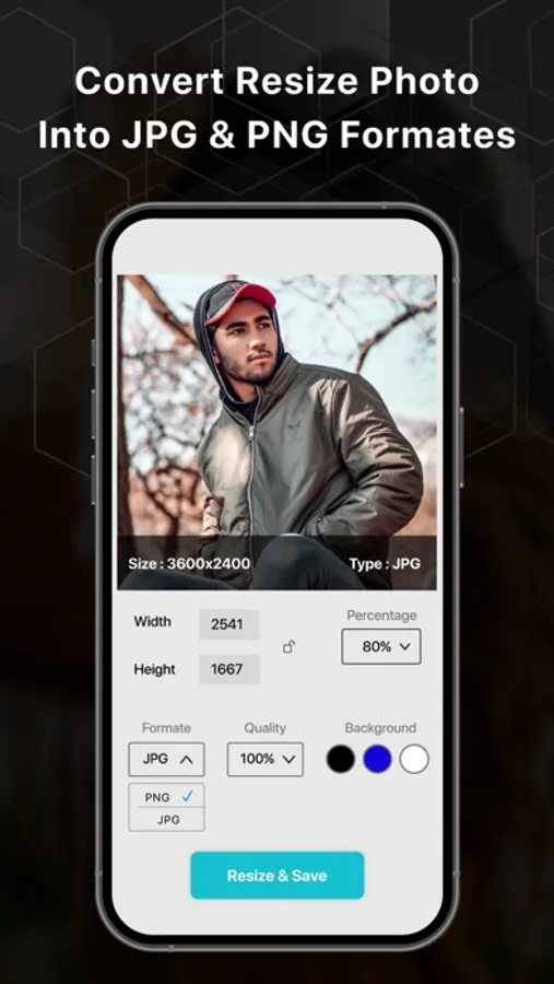 *This rezzize : image resizer app have the options to save the images in PNG or JPG Format.