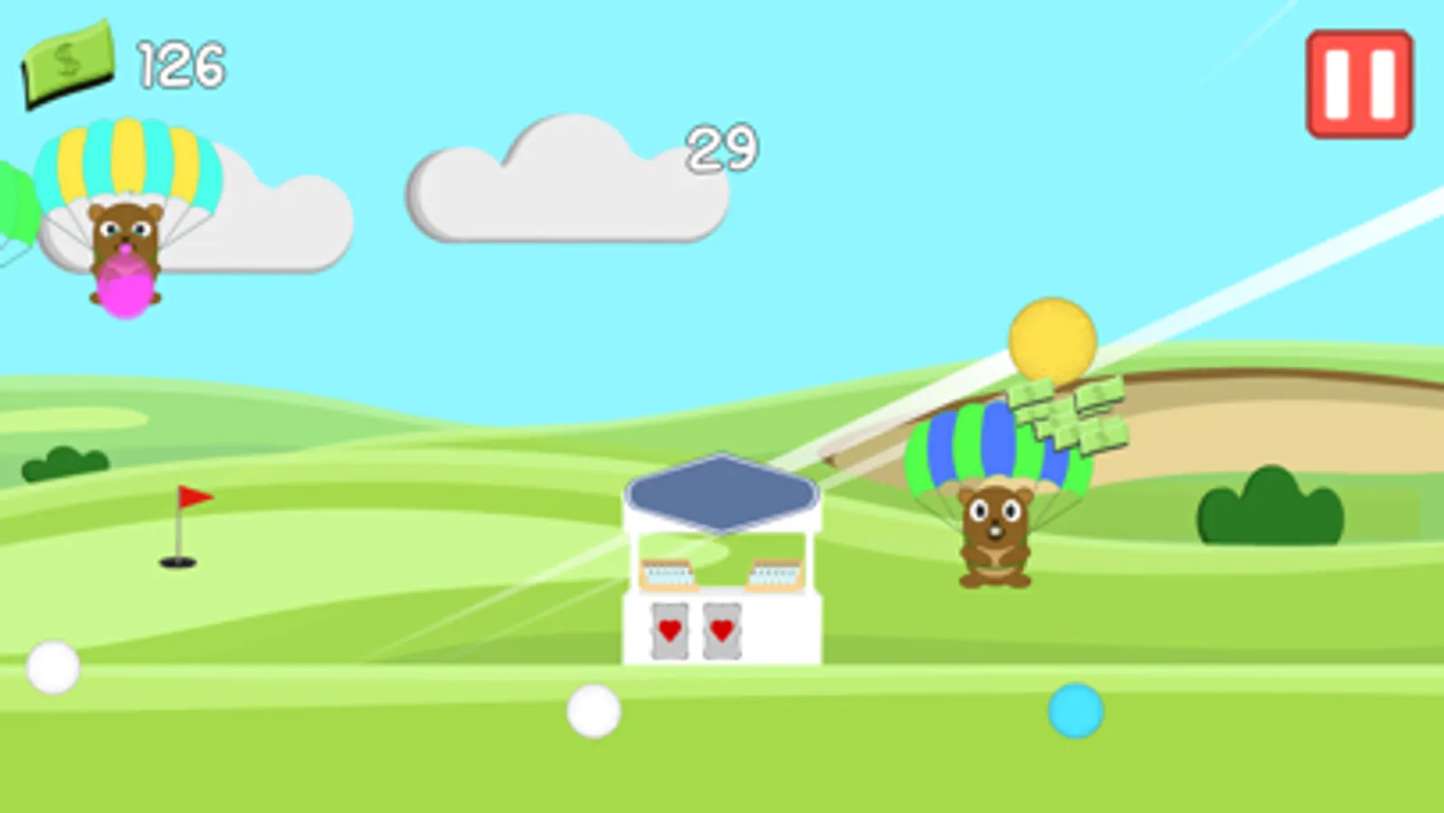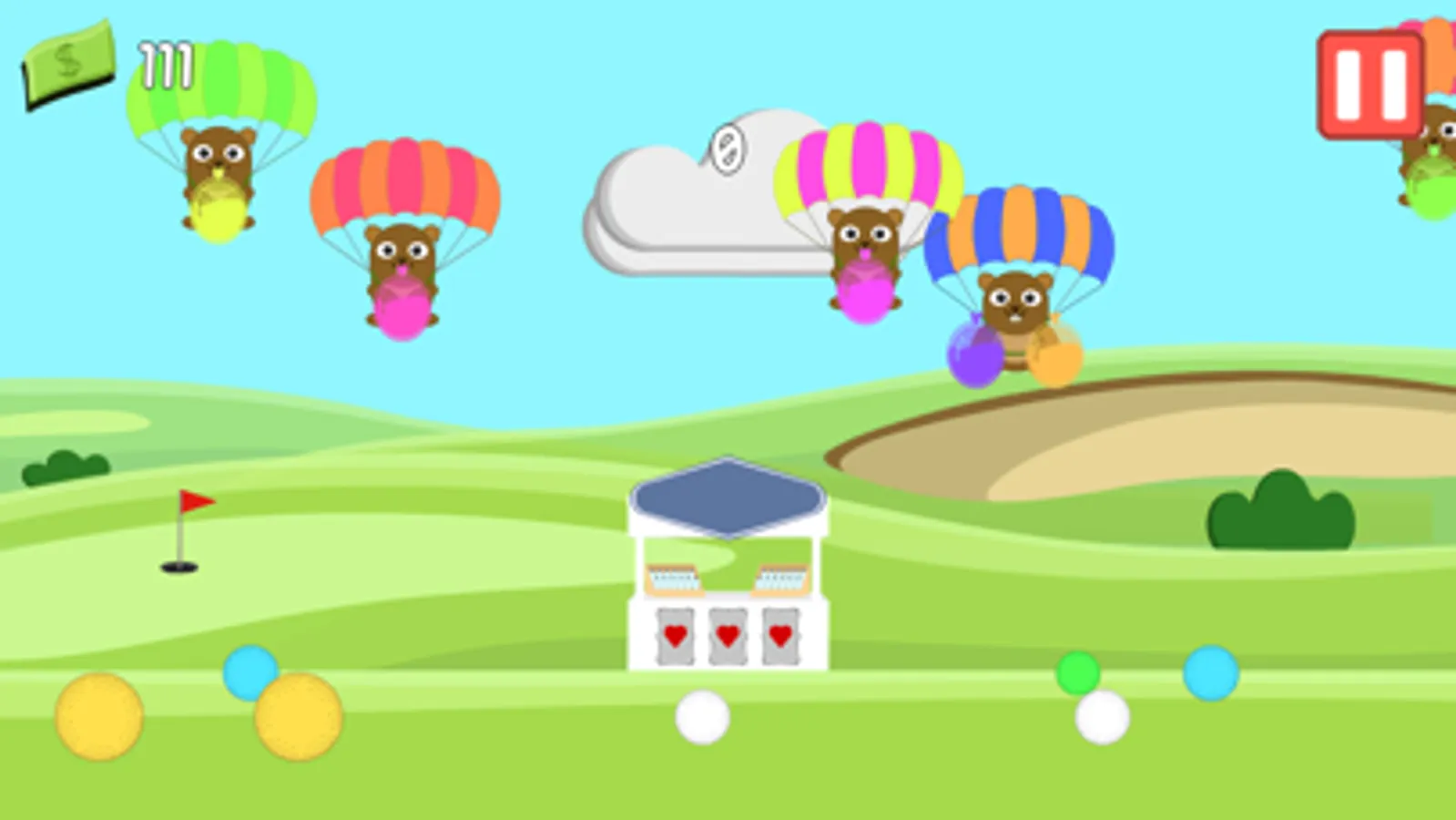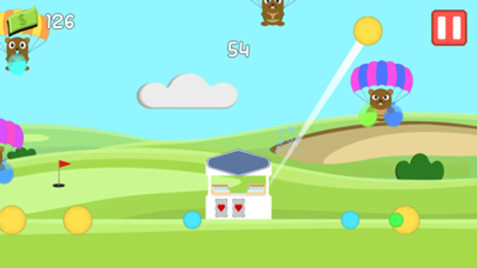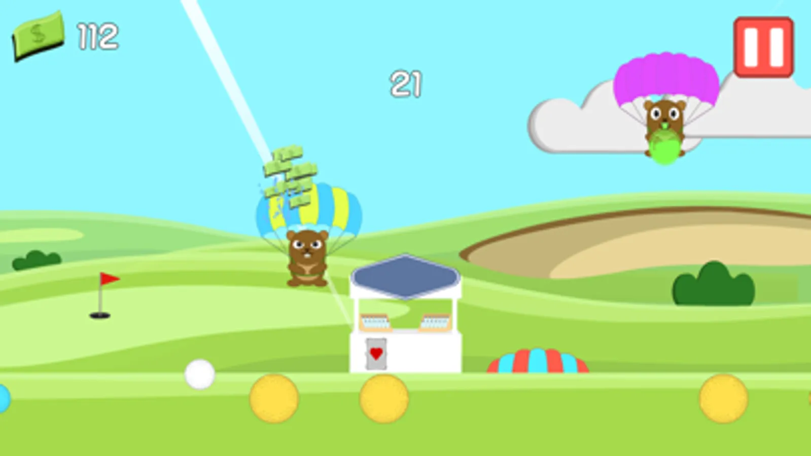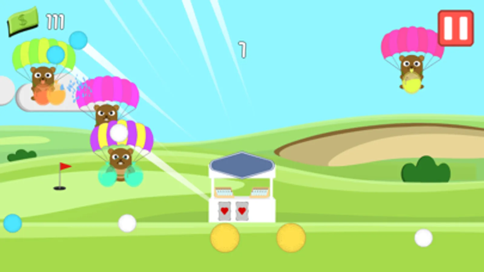 - Flick golf balls into the air to defend your stall