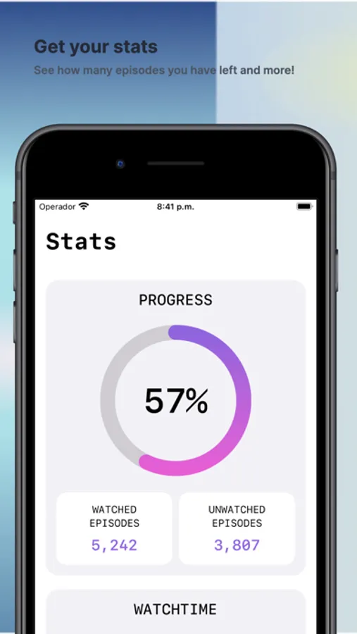 - Track your TV addiction with insightful stats, showcasing the number of episodes you've devoured and the amount of time invested.