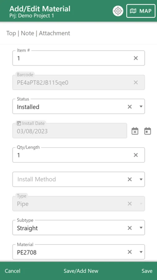 - Data collection forms provided for Material and Service Installations, on-site equipment, Pressure Tests, and more.