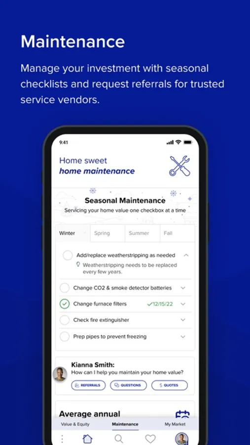 My Maintenance: Follow and complete home maintenance needs. Need a quick referral for some work for your property? Request trusted service vendors right from your agent.