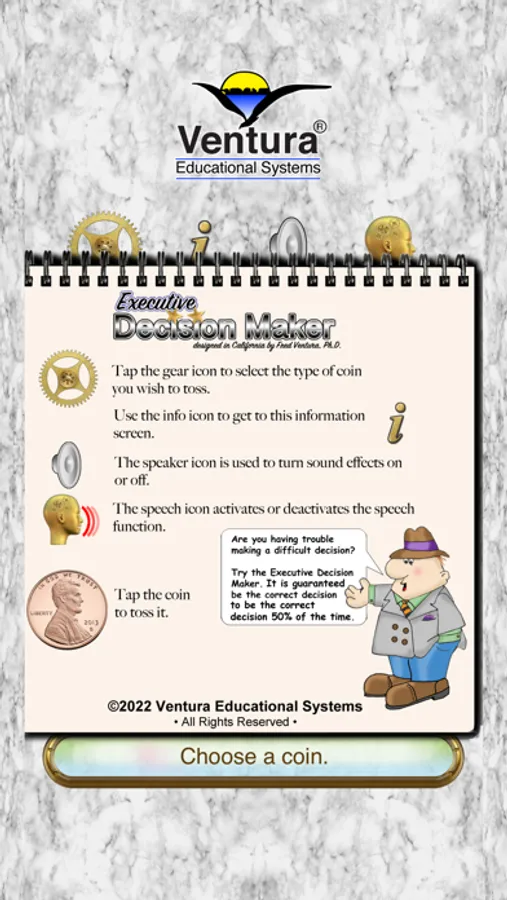 Have fun joking with your friends. Trying to decide where to go to dinner or which movie to see, let the Executive Decision Maker assist you. If you are like a lot of people you don't carry coins in your pockets so you will find the Executive Decision Maker - Coin Toss simulation useful.