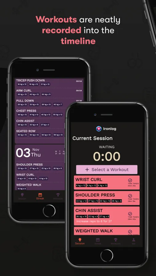Ironlog is a minimalist workout logger that makes it easy to keep track of your lifts and monitor your progress. With Ironlog, you can create custom workouts, set up sets and reps, and track your progress with detailed loading graphs and streaks. Plus, our built-in timer helps you stay on track and keep your workouts on schedule.
