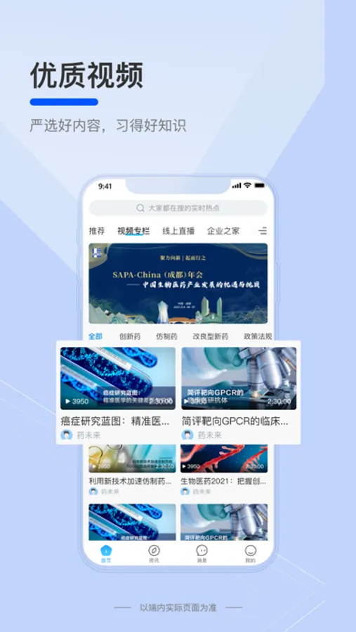 音视频服务,整合行业资讯资源,视频资源,企业资源等医药行业综合信息。在这里,可以观看医药及其相关行业的视频、直播,查找有关医药行业的企业的信息