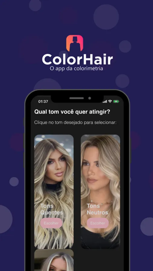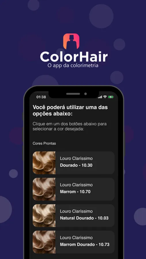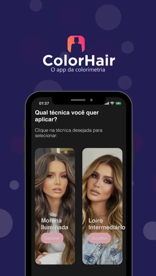 O ColorHair é app de colorimetria, destinado para profissionais que trabalham com design e coloração capilar.