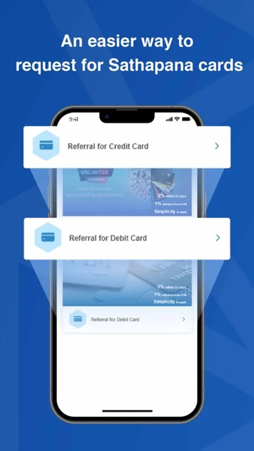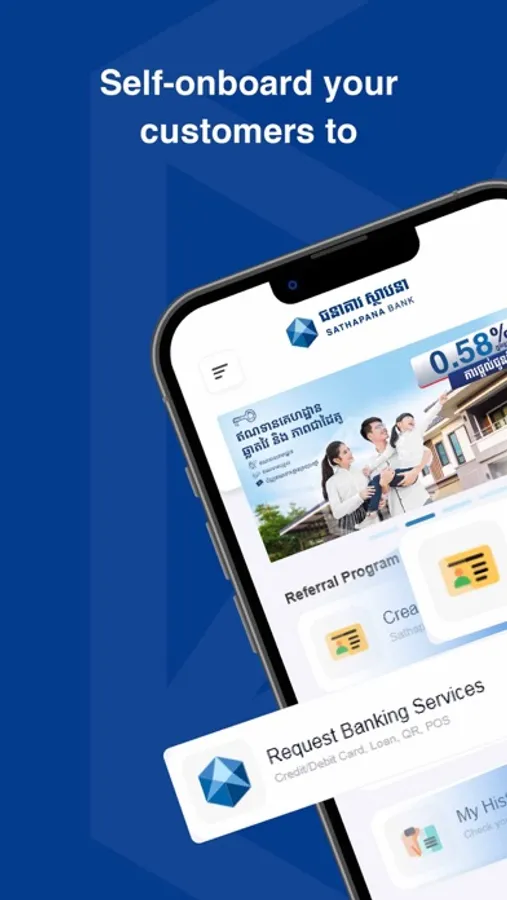 Sathapana Referral App is designed for our partners' agents to create cross-selling and upselling opportunities by allowing them to digitally refer their customers or friends to Sathapana banking services and benefit from the app's attractive referral incentive scheme. This app's main features include online account opening, request, loans, debit/credit card, POS, and QR.