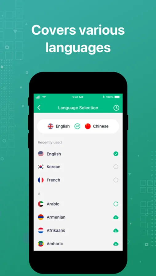 This is a very convenient feature on All Translate, just press and hold the microphone button to enter the sentence you want to translate, and All Translate will translate it into a language you can understand, which is very convenient. You can also choose to play the translated result directly, just like a dialogue to understand the sentence.