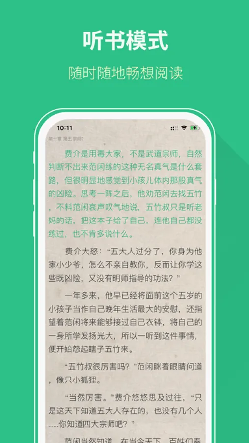 3.自动语音听书,当您不方便查看手机时可以打开听书功能继续您的阅读