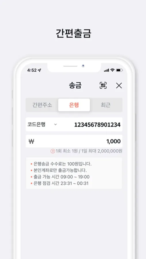 - 복잡한 인증절차 없이 간편하게 송금이 가능합니다.