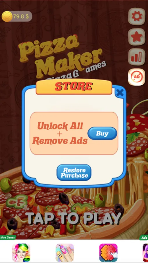 upgrade your cooking and baking games pizza shop with new ingredients by competing other pizza brand and be a best chef of this unique cooking game.