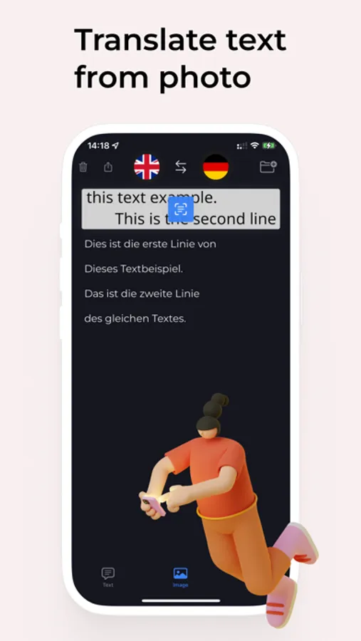 Photo Translation: Transform your smartphone into a powerful translator with our photo translation feature. Simply snap a picture of any text, sign, menu, or document, and watch it magically convert into your desired language.