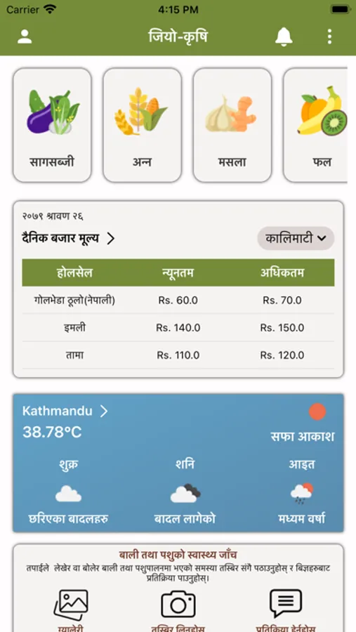 यस बाहेक मौसम पूर्वानुमान, नजिकैको बजार केन्द्रको मूल्य सूची र किसानको लागि गतिविधि रेकर्ड गर्ने डायरी पनि यसैमा सम्मिलित छ।