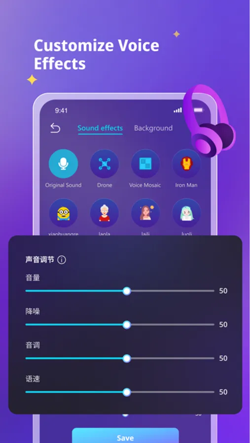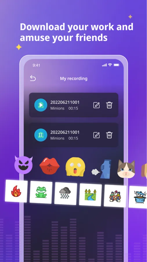 It offers you different unique and special voice effects and background sound effects to create funny audio.