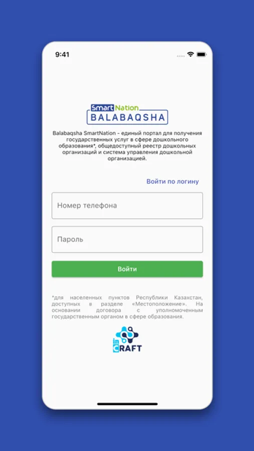 - Вход в мобильное приложение BALABAQSHA - для родителей.