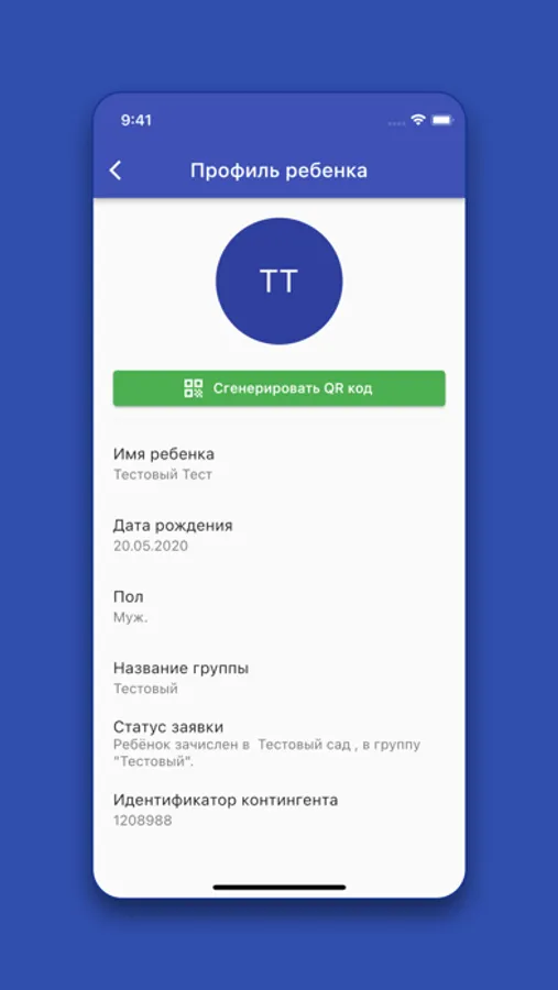 - Генерация QR-кода для отметки входа в дошкольную организацию.