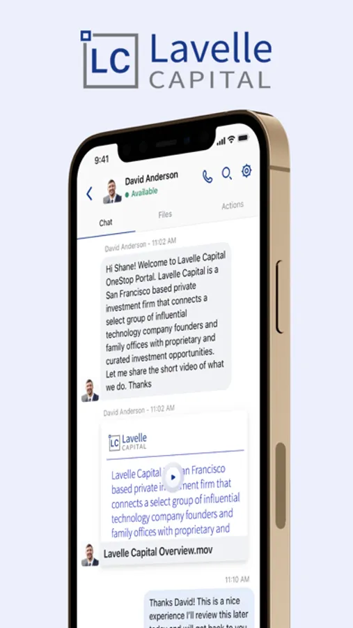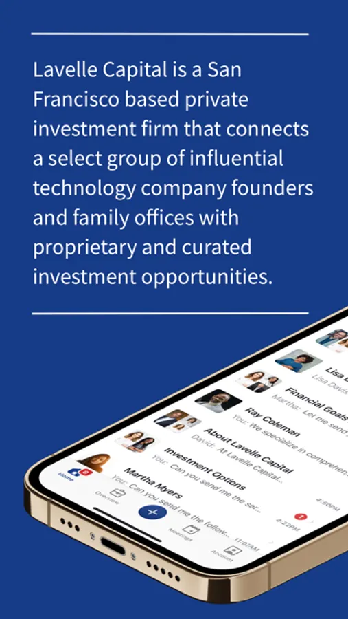Lavelle Link is a secure, private, and compliant one-stop solution for Lavelle’s clients and investors to manage the various components of their financial lives. Users can utilize Link to engage with their service team, review their financial portfolios, exchange documents, and keep track of outstanding tasks - all from the convenience of their mobile device.