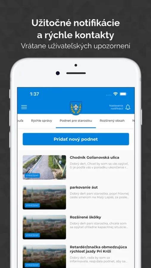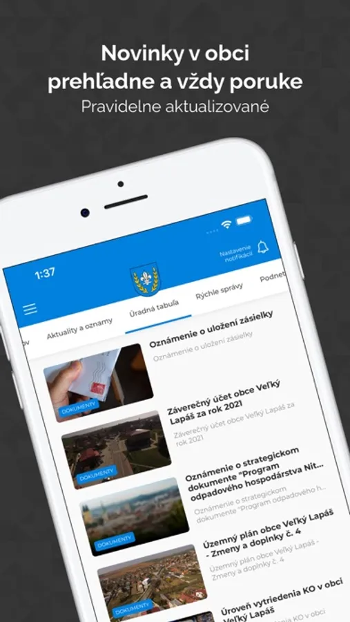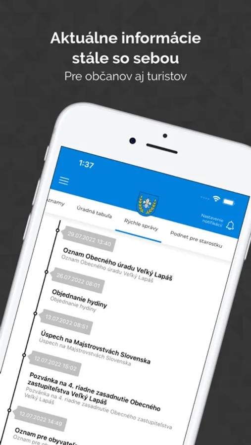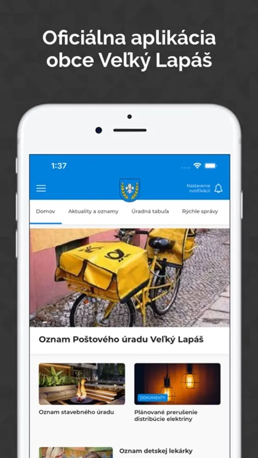 Mobilná aplikácia obce Veľký Lapáš. V aplikácii nájdete aktuálne informácie z diania v obci, kalendár, dôležité kontakty aj top lokality. Môžete si nastaviť upozornenia na rôzne udalosti, od noviniek, cez udalosti kalendára až po denné sumáre. Obec Vám v prípade kritickej situácie (napr. povodne) môže poslať upozornenie priamo do aplikácie.