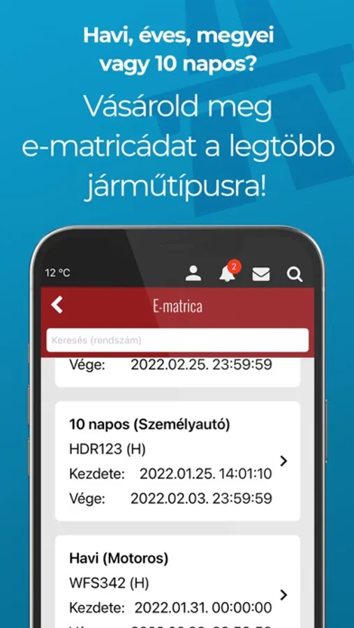 • E-matrica: A funkció segítségével havi, 10 napos, éves vagy megyei autópálya jogosultságot vásárolhatsz a legtöbb jármű kategóriában bankkártyás fizetéssel. Az applikációban megtekintheted a vásárlásokat és ellenőrizheted azok érvényességét.