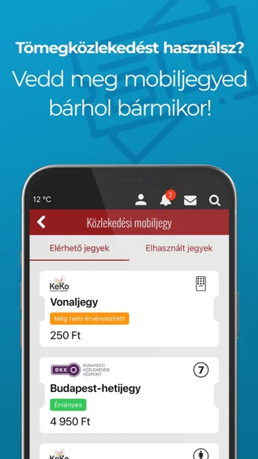 • Közlekedési mobiljegy: Ha a tömegközlekedést választod, mobiltelefonod segítségével elektronikusan vásárolhatsz jegyet a közösségi közlekedés járataira. Országos lefedettséggel, valamennyi szolgáltató, valamennyi jegye és bérlete elérhető. Az app használatakor nem kell elárusító helyeket felkeresned, akárhol is vagy, időveszteség, készpénz használata, és sorban állás nélkül, kényelmesen juthatsz hozzá helyi, illetve helyközi jegyeidhez.