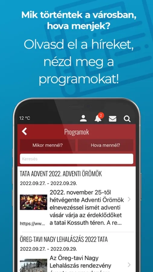 Elsőként értesülhetsz a friss információkról, hírekről a város életével kapcsolatosan, akár közvetlen push üzenet formájában is.
