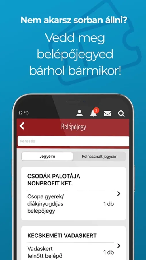 • Belépőjegy: Ha kulturális eseményre mennél, a mobiltelefonod segítségével elektronikusan vásárolhatsz belépőjegyet számos magyarországi intézménybe. Keresd az elérhető szolgáltatók listáját az applikációban (pl. Fővárosi Állat- és Növénykert, Budakeszi Vadaspark, Kecskeméti vadaskert, Debreceni Állatkert).