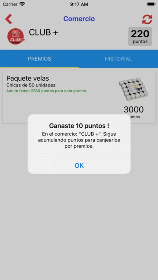 Podrás ver los puntos que vas acumulando y las recompensas que puedes canjear solicitándolas desde la app.