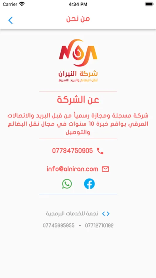 شركة مسجلة ومجازة رسمياً من قبل البريد والاتصالات العرقي بواقع خبرة ١٠ سنوات في مجال نقل البضائع والتوصيل