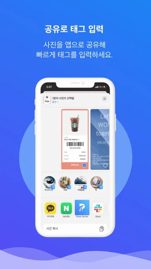지금 막 캡처하는 사진도, 이미 갤러리에 저장한 사진도 앱으로 바로 공유하여 사진의 핵심을 기록해보세요.