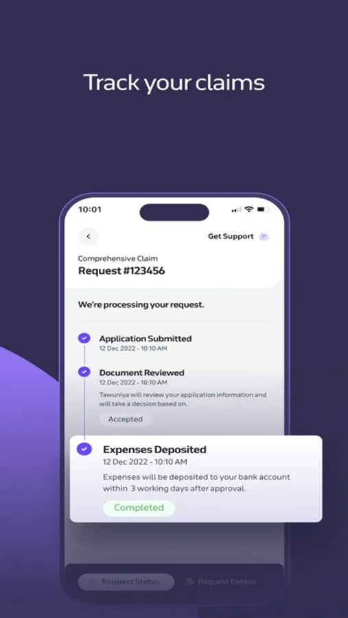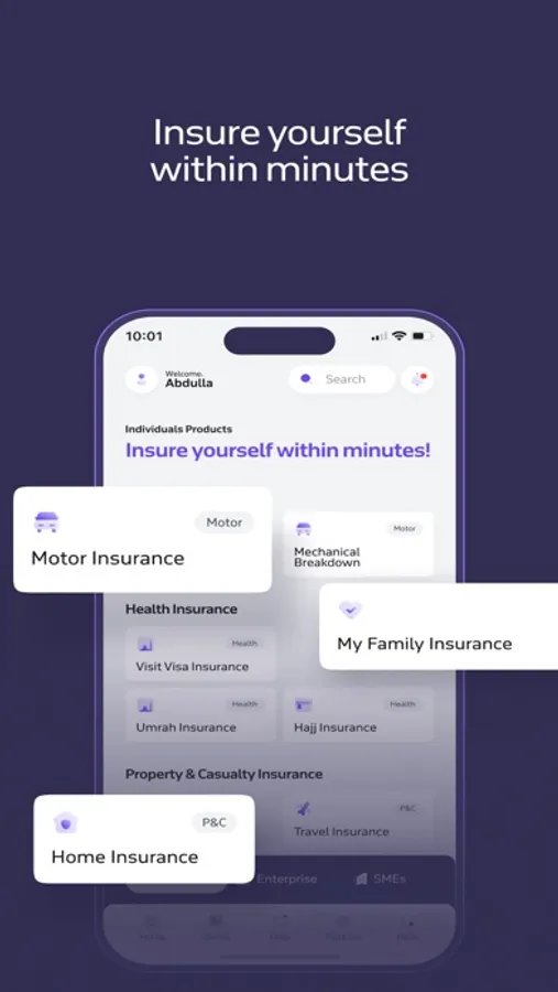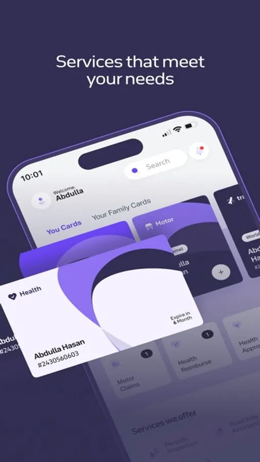 - تقديم وتتبع المطالبات والسداد الرقمية: يمكنك تقديم مطالباتك المتعلقة بالتأمين الطبي والمركبات والسفر وغيرها وتتبعها