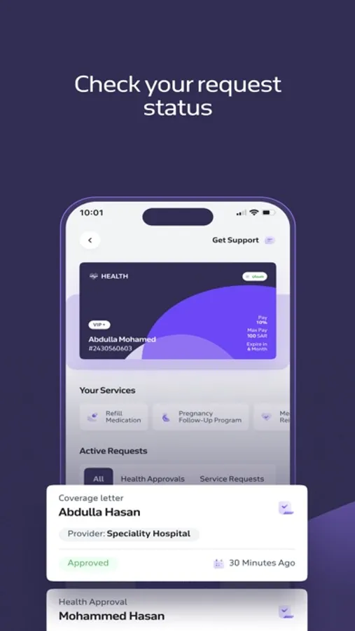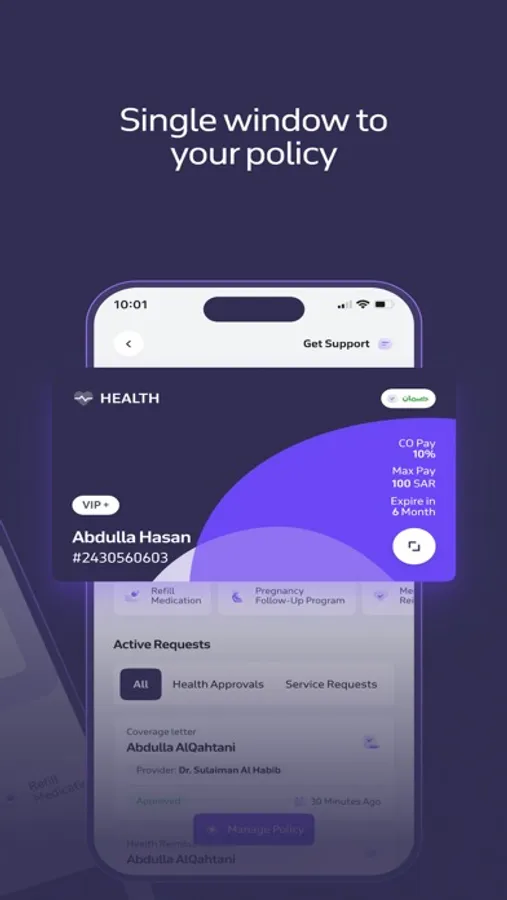 - عرض ووصول سريع لجميع تفاعلاتك ( الموافقات الطبية والطلبات والمطالبات)