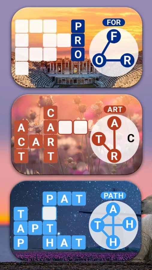 Solve word puzzles with stunning backgrounds while improving your vocabulary. Brain puzzle games such as word cross games are wonderful for your brain. Now you can prove your word puzzle skills!