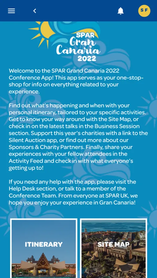 Informational app for the attendees of the SPAR 2022 Conference in Gran Canaria. The app includes all there is to know regarding the business session, conference agenda, site map, FAQ's, helpful information, activities and much more. Please download the app to receive notifications about your personalised agenda and timings and explore our activity feed to see what other attendees are getting up to at the event.