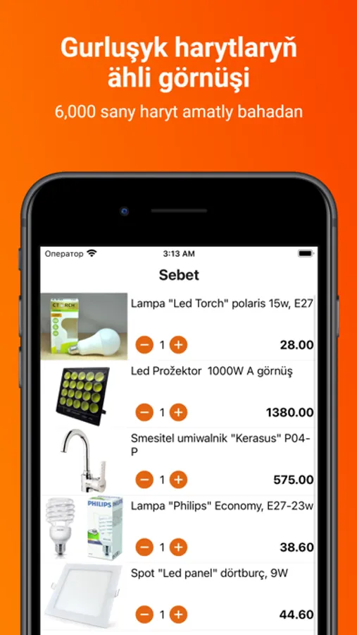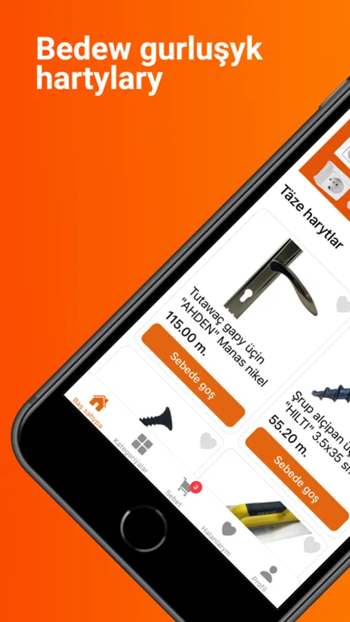 Gurluşyk we hojalyk harytlaryny öz el telefonyňyzdan sargyt ediň. 10000-den gowrak dürli gurluşyk harytlary sargyt edilen güni günibirin eltmek ýa-da Siziň özüňize öňäýly wagtda eltip bermek hyzmaty bilen. Bizde hemişe çüýden başlap elektrogurallara çenli giň haryt görnüşleri elýeterlidir.
