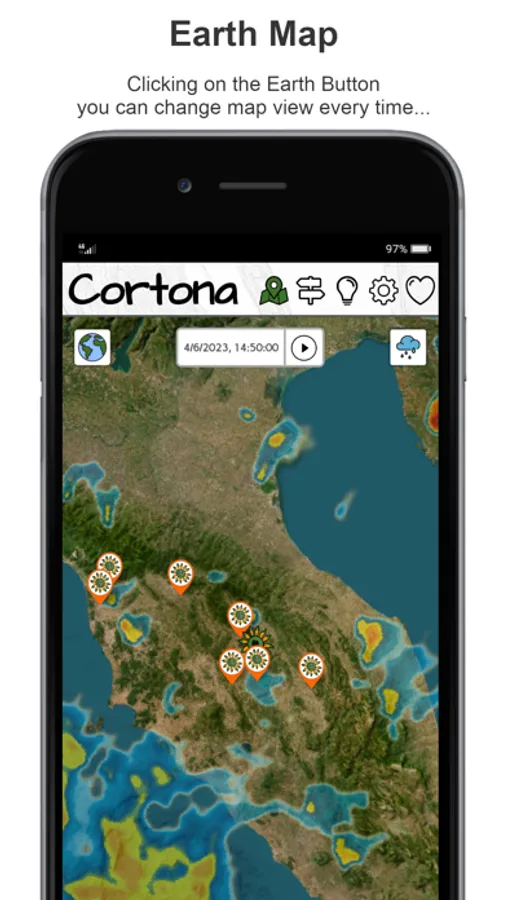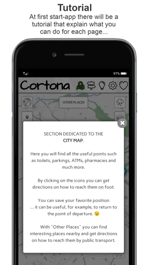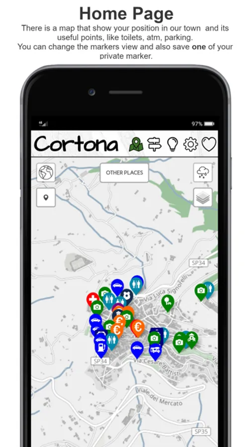 - A geo-localized map that will indicate your position and the points of interest near you.