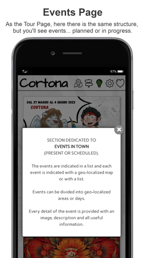 The Cortona interest point are told verbatim, but with the next goal of making the audio and becoming a real audio guide.
