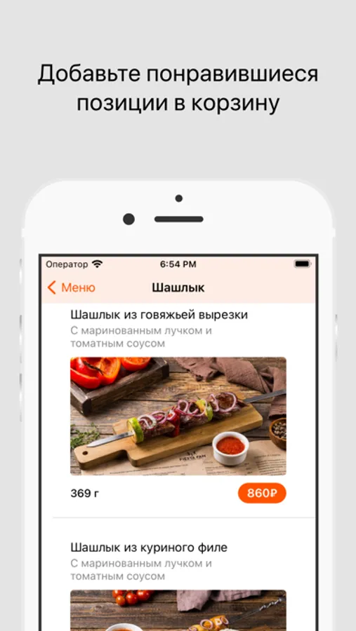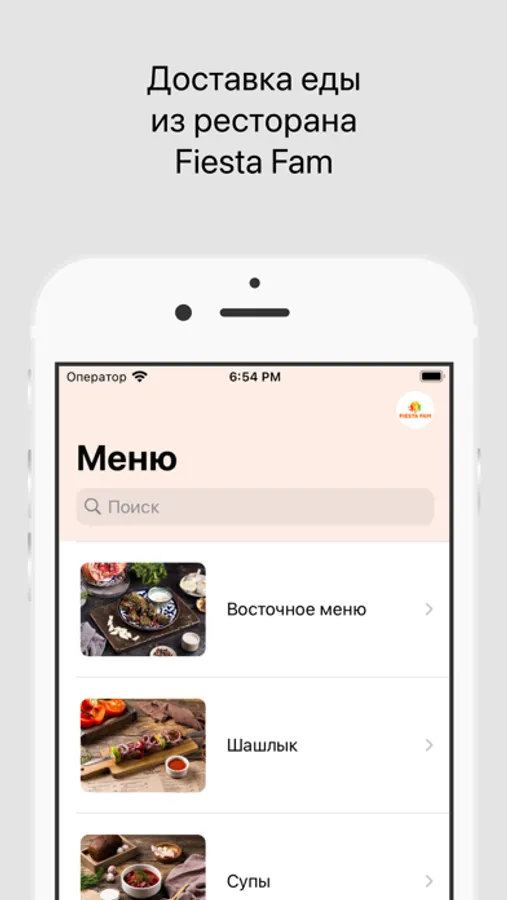 Как сделать заказ в приложении “Fiesta Fam”: выберите понравившиеся позиции из меню, добавьте их в корзину и перейдите на экран оформления заказа (по нажатию на иконку корзины).