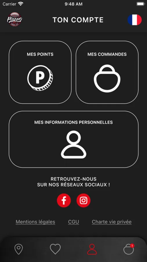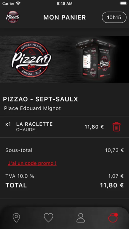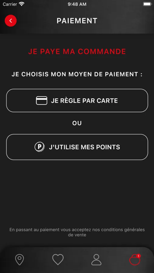 4 - Réglez avec votre CB directement sur l'appli ou avec vos points fidélités Pizz
