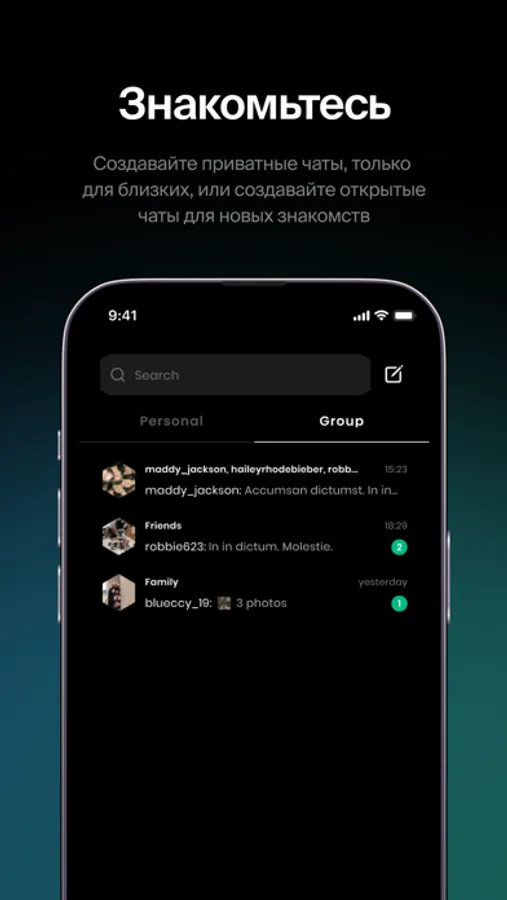 Создавайте приватные чаты, только для близких, или вступайте открытые чаты для новых знакомств.