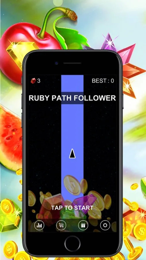 Your goal is to score as many points as possible and take first place on the leaderboard. Collect gems and use them to unlock new skins in the shop menu.