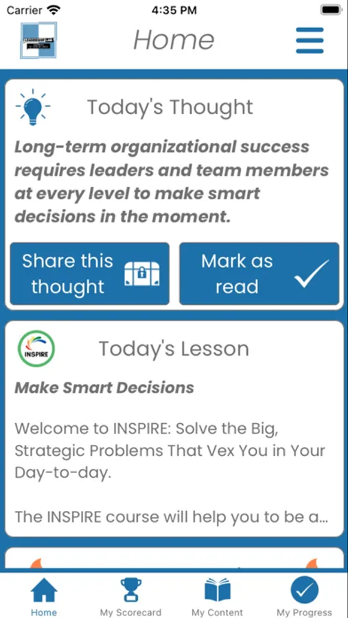 The Leadership Lab Learning Platform provides relevant, practical, and easily digestible leadership training for busy leaders. Each day offers 10-15 minutes of content in a micro-burst to help you learn the lesson, make it yours, and apply it. You'll learn from real-world leadership experiences that are relevant to your daily life. Access the program from your device, anytime that fits your schedule, and go at your own pace.