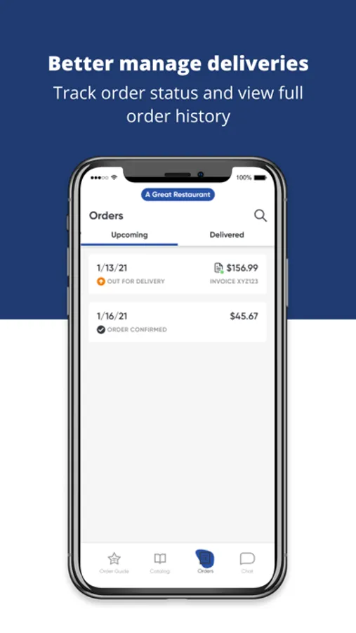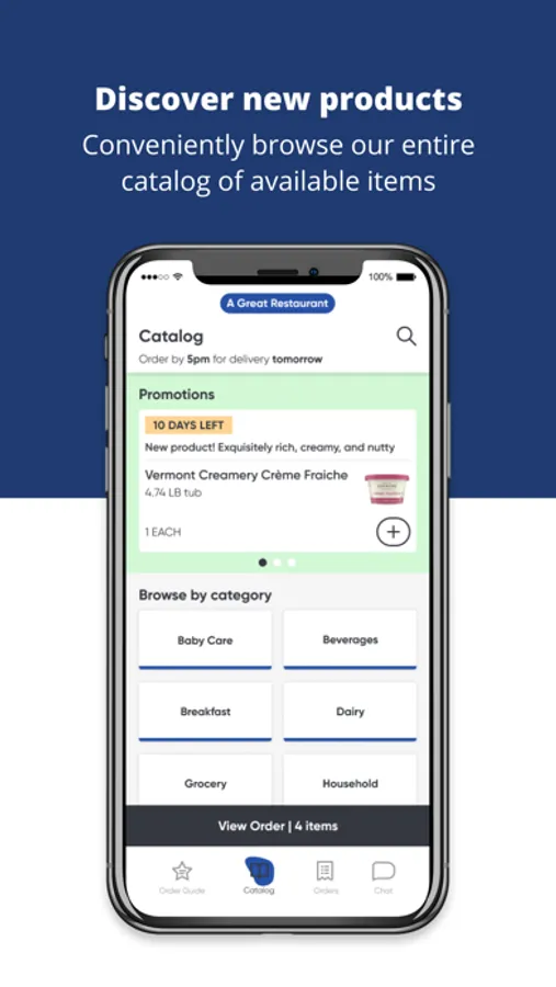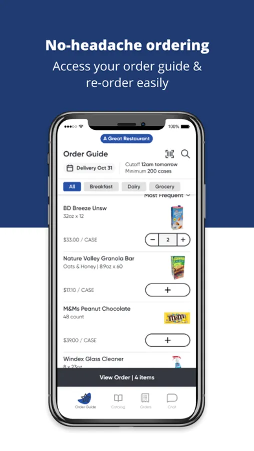 Our mobile app lets you search our complete product catalog, manage and update your ordering guide, and buy what you need at the moment you need it. It’s part of our commitment to giving you an ordering experience you’ll love.