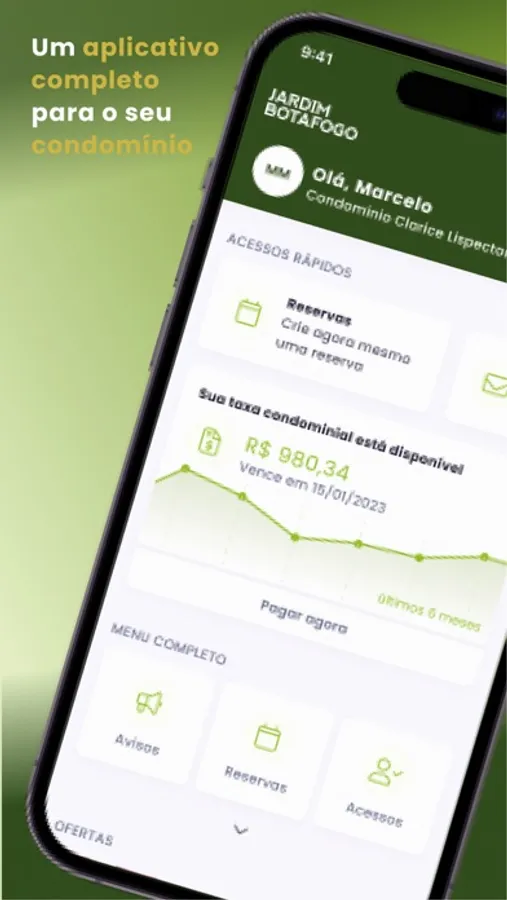• RESERVAS: Moradores realizam reservas dos espaços comuns (churrasqueiras, salão de festas…) através do app Condomínio Jardim Botafogo. Chega de ligar na portaria ou síndico para consultar a agenda dos espaços.