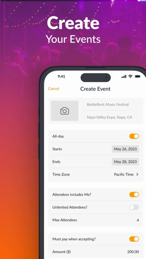 Actually, all the work about event invitations that currently lives across multiple scheduling, communications, and payment platforms, now you can finish in one place - In our app!