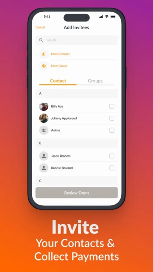 - Invite your contacts & collect payments