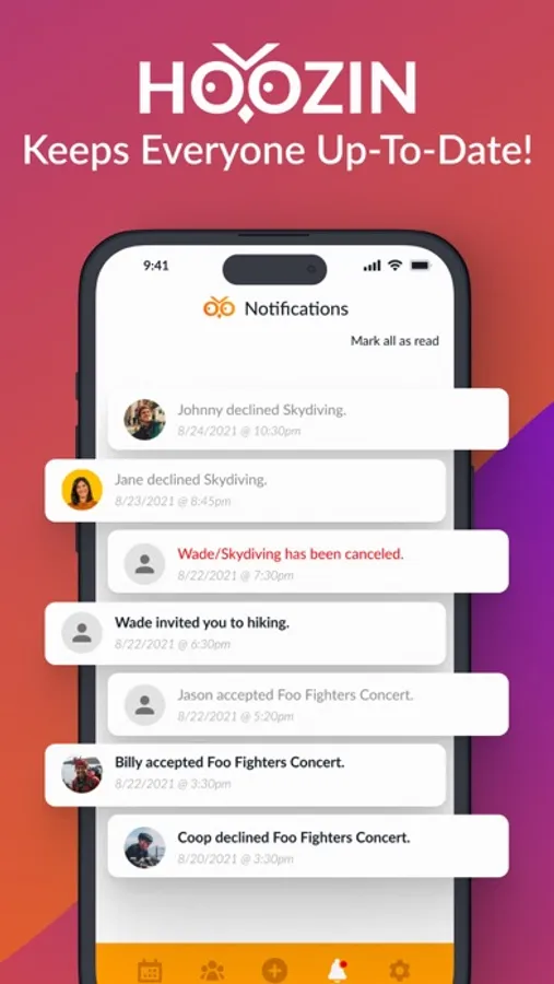 HOOZIN is the ultimate group event invite app, centralizing all of your event invitation activity in one place! This is an amazingly simplifying event planning tool with a unique and advanced event notification system, that you can also use as a wedding and party planner tool - Manage the guest list and track check-ins & RSVP!