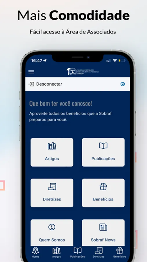 O novo App SOBRAF veio para facilitar de uma vez por todas o seu dia a a dia. Com ele você poderá ter acesso facilitado ao portal do associado, acompanhar nossas novidade e receber notícias, benefícios e facilidades em primeira mão.