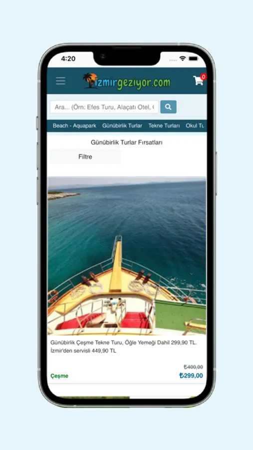 İzmir Geziyor ile tek tek acente aramanıza artık ihtiyaç kalmayacak, İzmir çıkışlı tüm turlar İzmir Geziyor’da en iyi fiyat avantajı ile satışta.