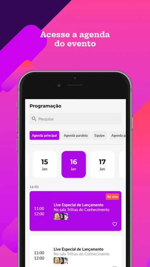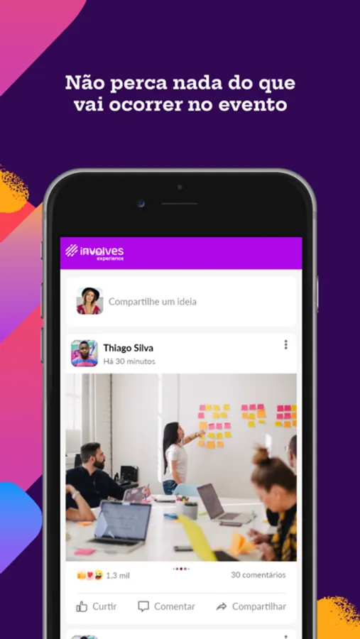 Com o aplicativo Involves Experience 2022, você tem acesso a uma rede social exclusiva, pode fazer novos contatos, enviar perguntas aos palestrantes, trocar mensagens com outros participantes, enfim, interagir com a comunidade. Além disso, você pode consultar a programação, avaliar conteúdos, dar feedback e responder quizzes. Utilize o APP e aproveite ao máximo os recursos.